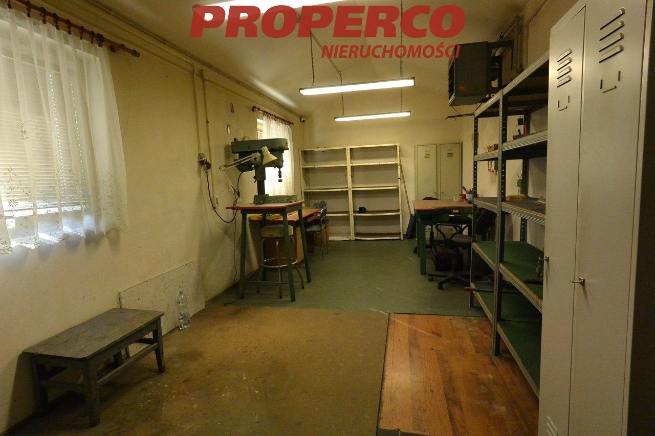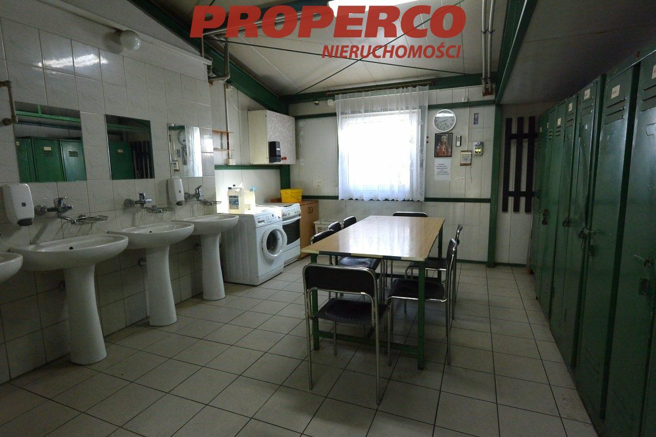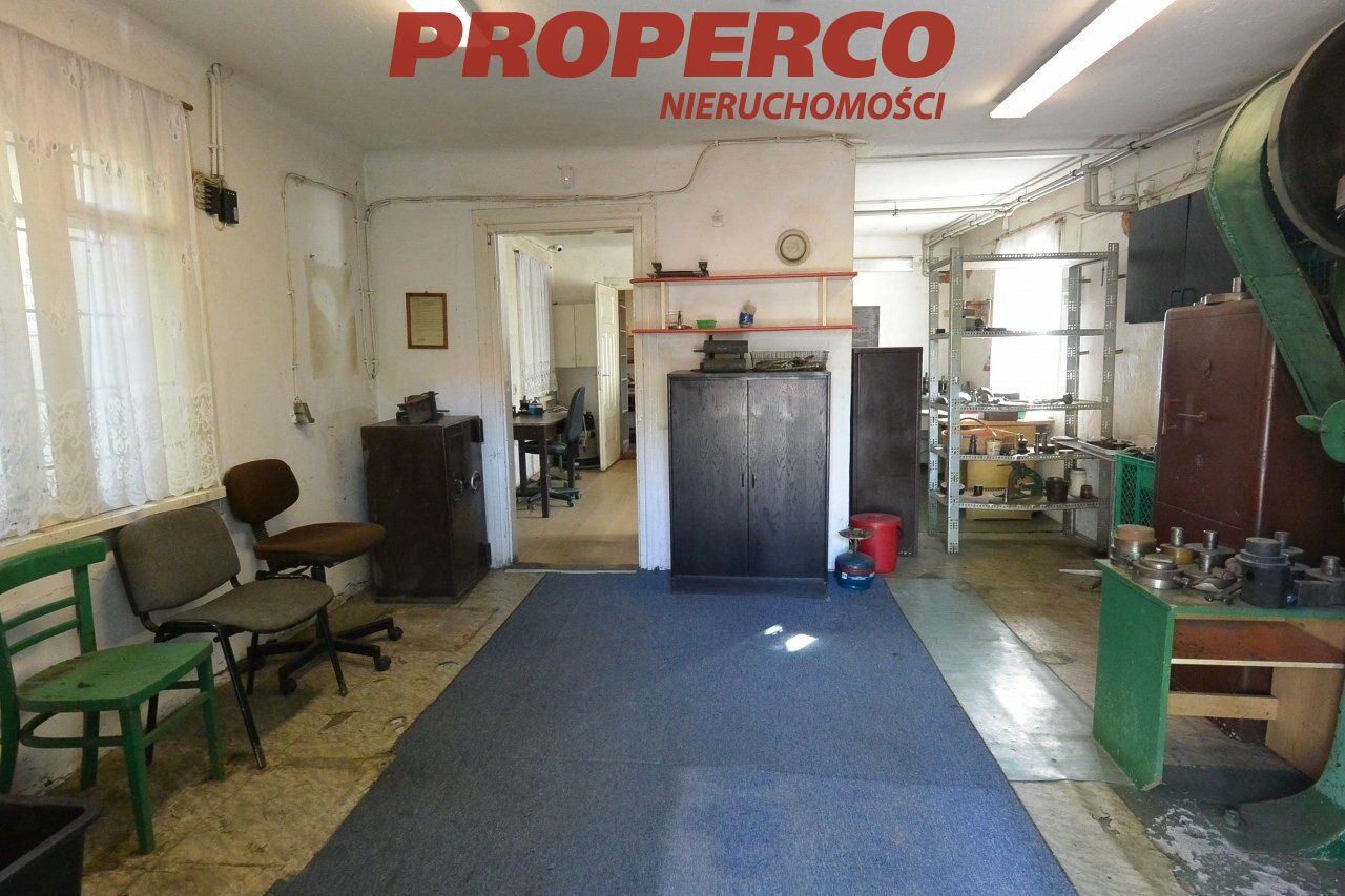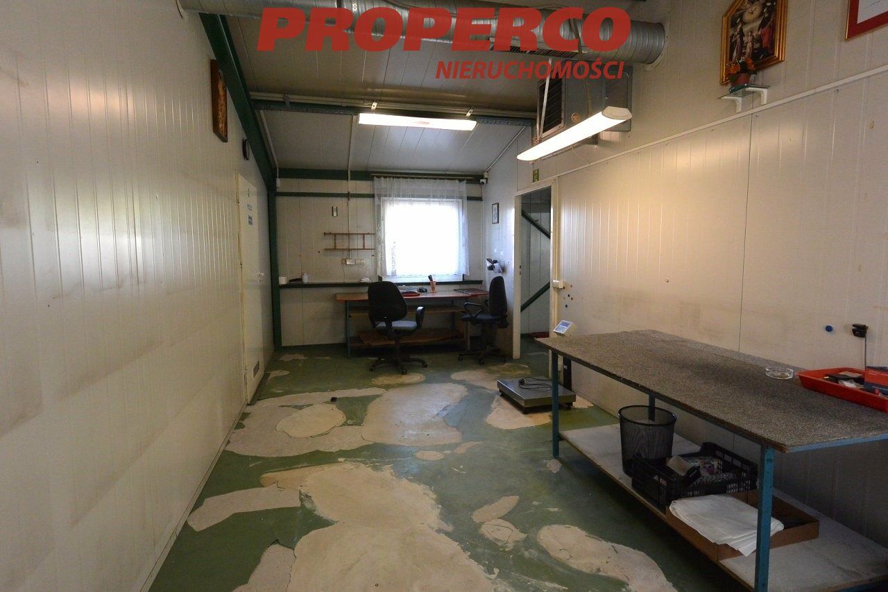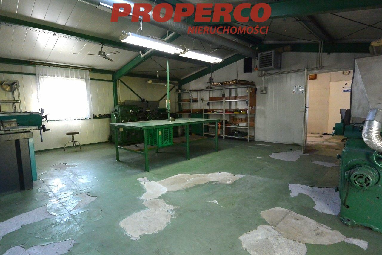 Na działce znajduje się obiekt o powierzchni całkowitej 416,5 m2. Budynek z 2000 roku. Stan: do remontu. Ogrzewanie olejowe. Dwa przyłącza energetyczne po 13 kW (możliwość zwiększenia przydziału mocy). Alarm, kamery. Konstrukcja stalowa, dach o konstrukcji stalowej kryty płytą warstwową. Wysokość pomieszczeń: 3,4 - 6 m. Na powierzchnię obiektu składają się: